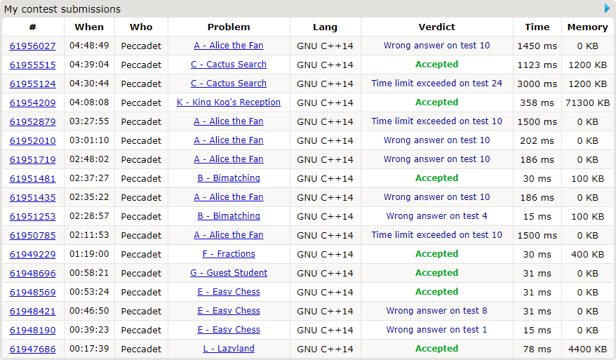 [[Image(Standings.png, 600px)]][[Image(Submissions.png, 600px)]]