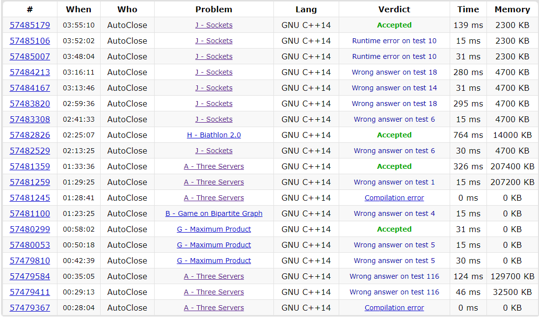 hhf深谙假赛之道,G题双WA,J题五WA,献无数罚时。
