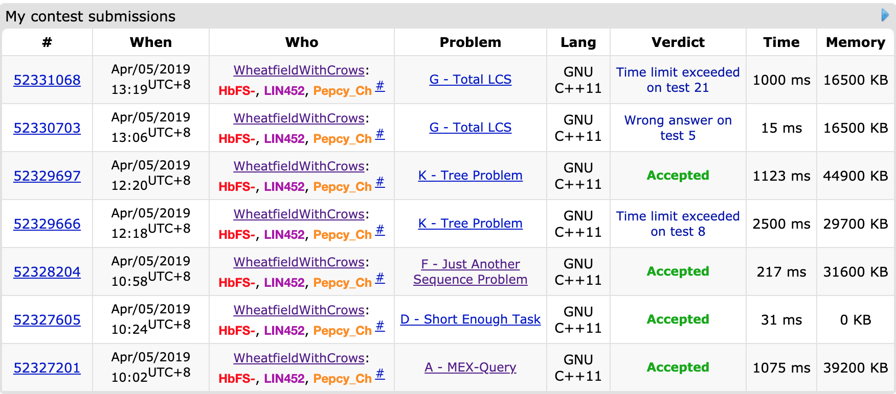 F 的斜优推的比较开心,毕竟以前我自己写到二分凸包找决策点的斜优题不超过 3 个。不过期间因为在梦中改代码(以为自己已经改过了)向 dhr 说了 sb 的话。。。