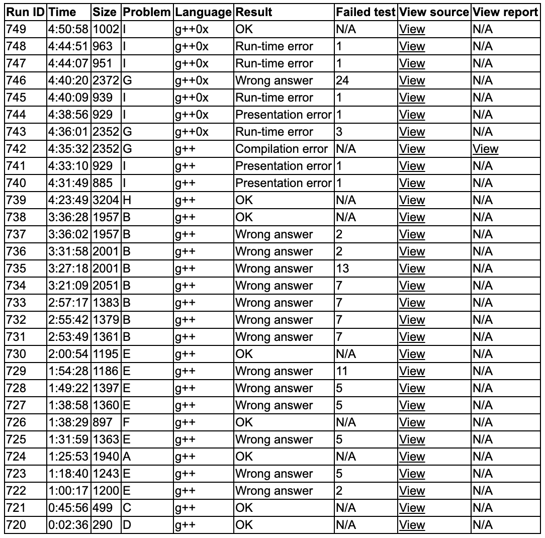 一场前期非常不顺利的比赛,但是在卡题的时候队伍处理得很好,到后面得题目也慢慢地补了上来,虽然少了一个全世界都过了的G题,但还是感觉big nice.