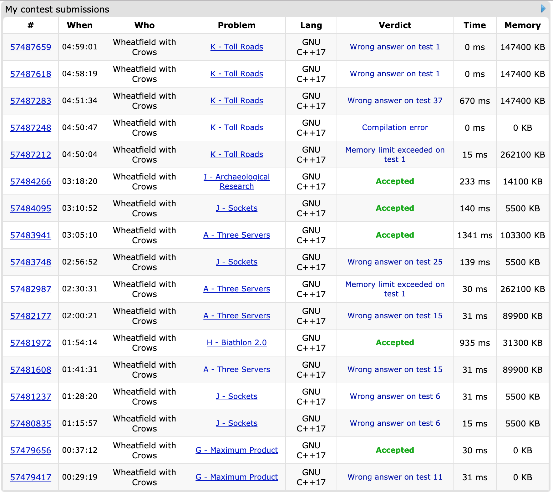 今天比较可惜的是K题没过,主要是留给K题的时间不是特别多(或者可能是我们的做法写起来比较烦?我们最后的代码有4k,不过大部分都很好写)。