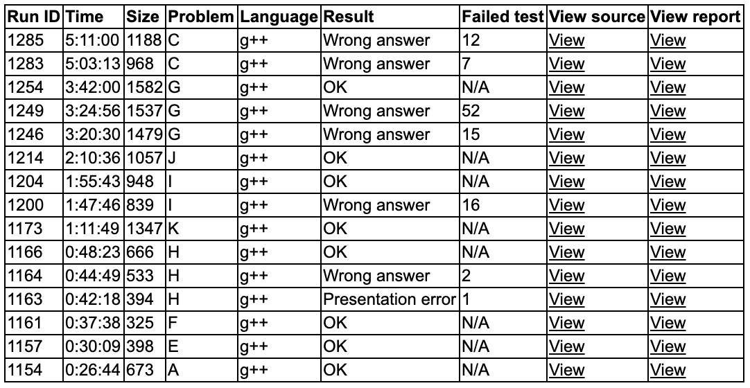 最后的c题,在机位已经空了的情况下上机打了一个表,试图找规律,我就在最后的100分钟里 一边嘴上说着“我不想找规律了这居然要找八遍规律呜呜呜”一边很实诚地不停在机上拼拼凑凑找规律。