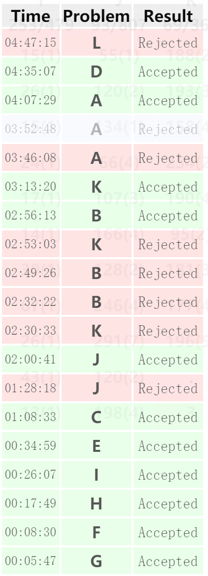 三是,整个队伍心态都很好?中期其实我们过题都有点卡的,但是我们(可能只是我)的心态很好,就很相信自己(队友)能过题。所以在dhr拯救k题的时候,我就很自然地去看a题了。