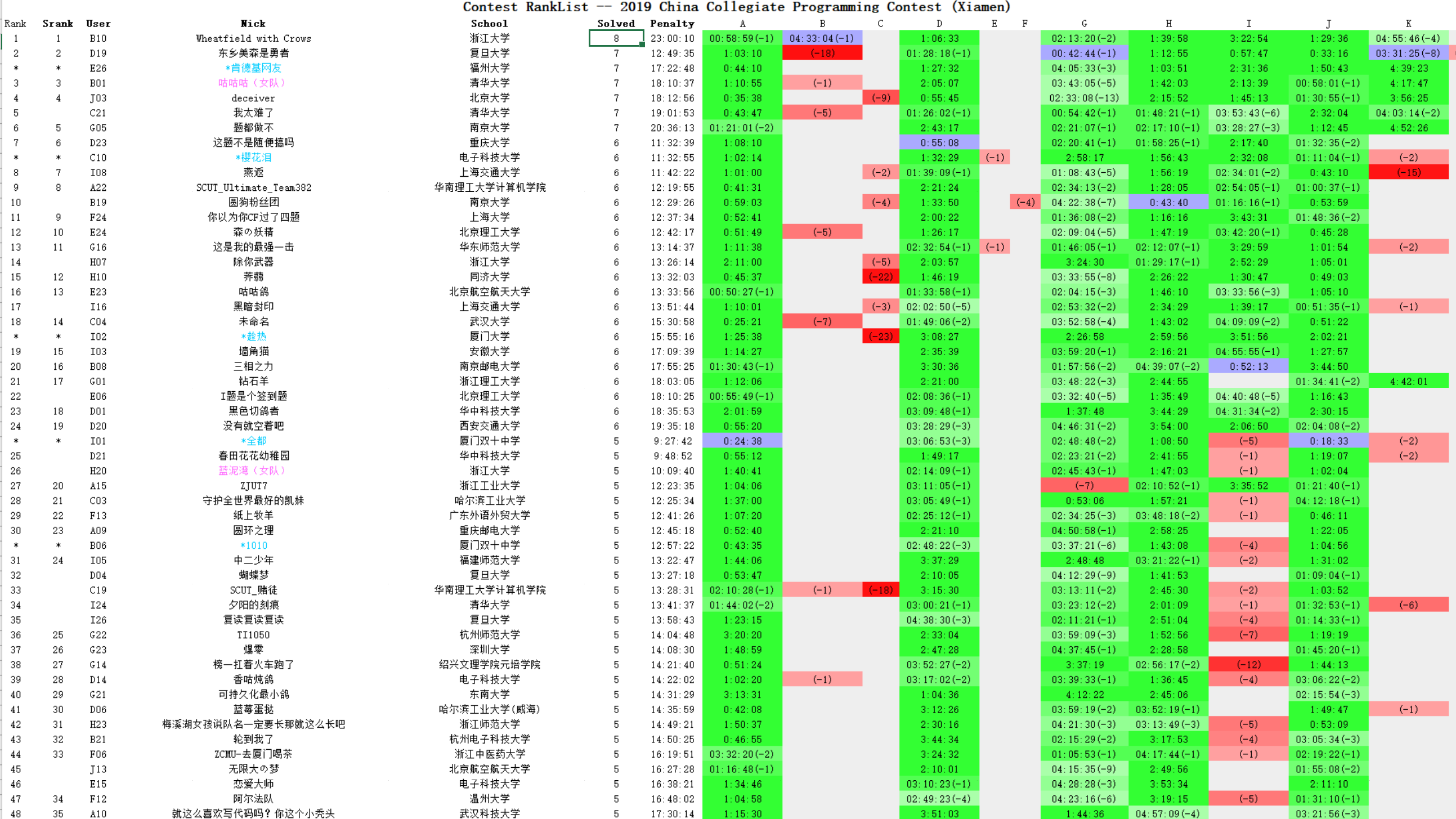 比赛里有处理的不好的地方。开K题的时间实在是太晚了,最后有题目的题意没读。自己有没想好就上机的情况。有不冷静的罚时。