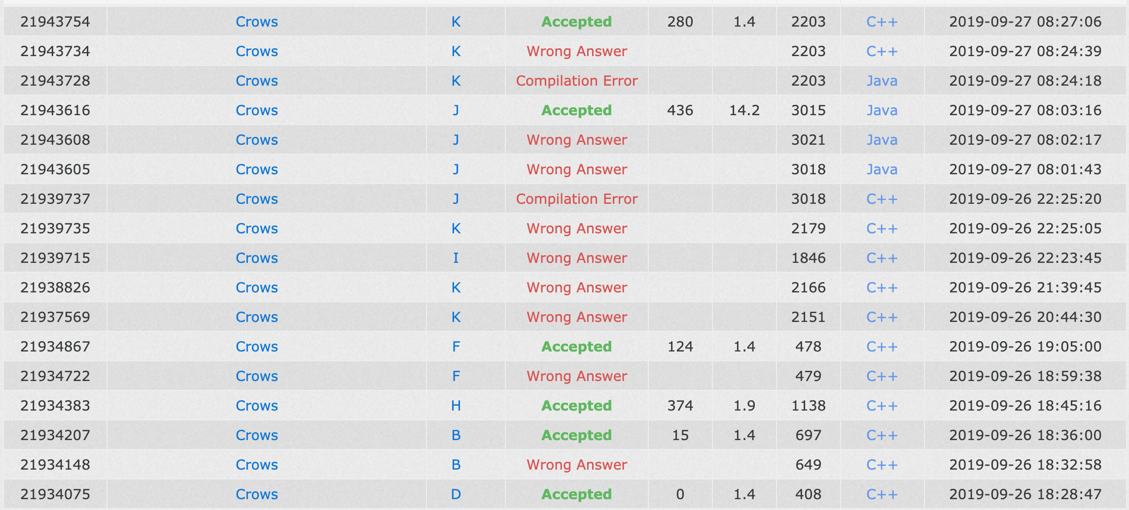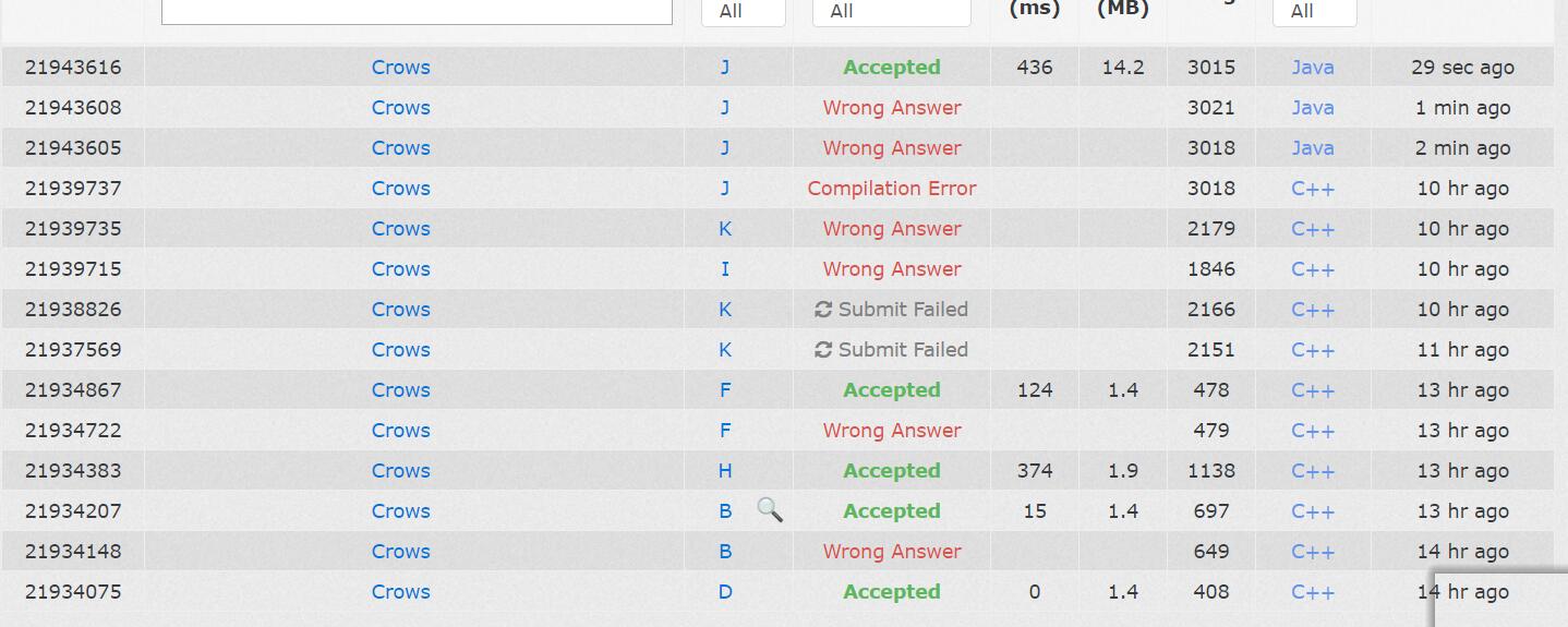 之后找出过几个错误,但都没有过(此时 vjudge 它好像交不到 hdu 那边去,只会 pending,就直接在 hdu 交了),这才意识到 lsy 之前打过一个表。同时,dhr 发现他读错了 J 的题意,现在可做了。
