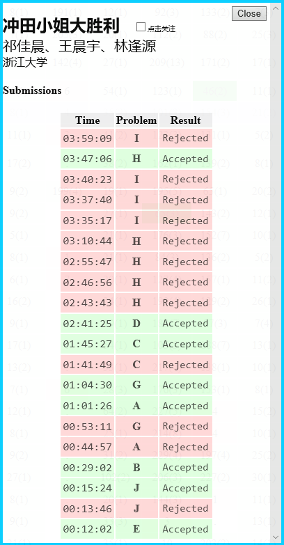 这场比赛从最终结果来看感觉打得不错?首先这场比赛比较好的一点是签到没有怎么卡,WA了之后一般都可以马上找到问题改出来所以前期的罚时也不算太惨,而且中后期题至少D和H都开的比较顺利,但是其实还是有一些问题,签到的时候的罚时基本都是一些很常见的代码细节的问题,这种以后还是要多注意 ,当然这么说是因为这场我并没有写代码。这场我基本零贡献实锤了,好在读题意的时候并没有出锅,但是后期瞎想I的结论影响了队伍的速度。以前一般都是我来安排上机的时机,这场感觉也没有什么问题,整个安排比较紧凑,可能和签到题多也有关系。