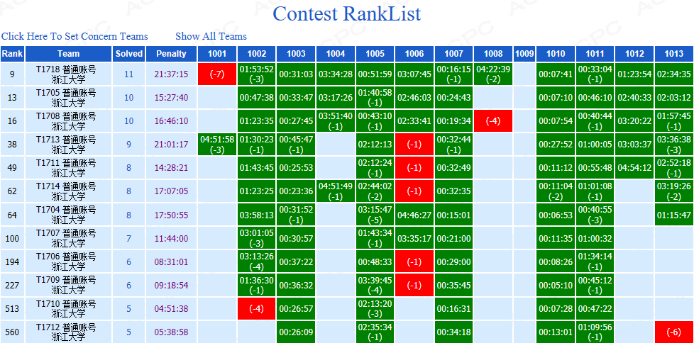 前期发挥没有问题,转折点在1005,这题没调出来以及后面的题看起来太难使我们队的心态出现了动摇。之后勉强救回一题