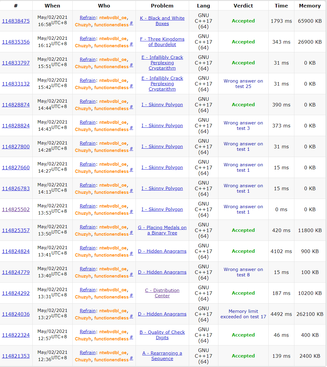 [[Image(Standings.png, 1000px)]][[BR]][[Image(Submissions.png, 600px)]]