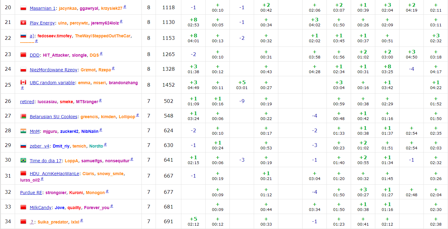 Grammy看完B感觉好像没想法,回去写A,Oscar跟着榜切,B1Y12,D1Y33,24min时,Grammy交了一发A,wa on test 4,找了一会没找到错接下了H的题意,给出了H的一个做法扔给了Oscar写,自己回去查A的错。H1Y41,11分钟后Grammy又交了一发A,wa on test10(一脸迷惑)。