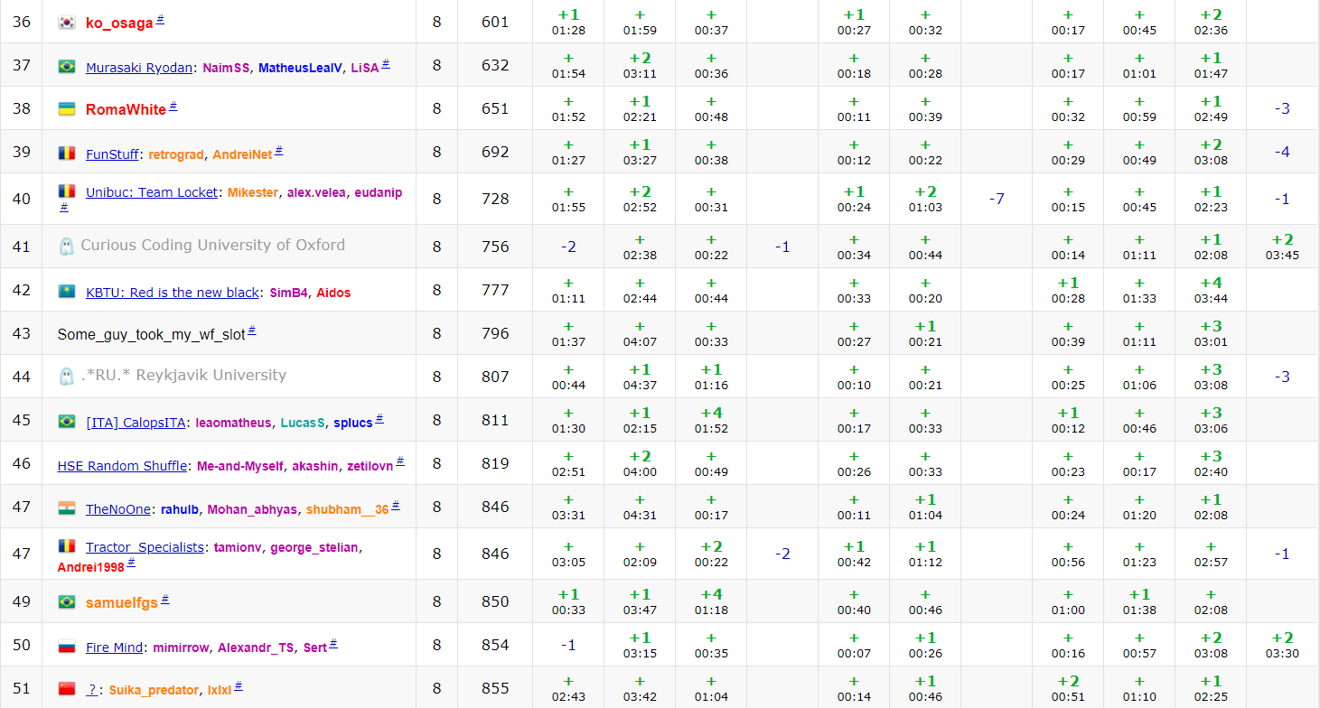 开场Oscar E1Y14,然后两人双双卡签到题,Oscar卡F,他写了一个假的线段树后来发现可以不写线段树不过没改,直到最后过题的时候它的线段树都是假的,但是过了,F2Y46,Grammy卡H,一开始他写了一个自己都不知道在干什么的枚举,然后这个枚举很迷惑的过了样例和几组手造的数据,虽然他也不知道为什么能过,但他还是交了,wa on test7,他发现一个地方写的有锅,又交了一发还是wa,他思索了一下好像知道自己在写什么了,感觉好像挺对的,过了一会他意识到这样可能有锅而且有一种极为好写的做法于是他重写了一个递归,H3Y51。