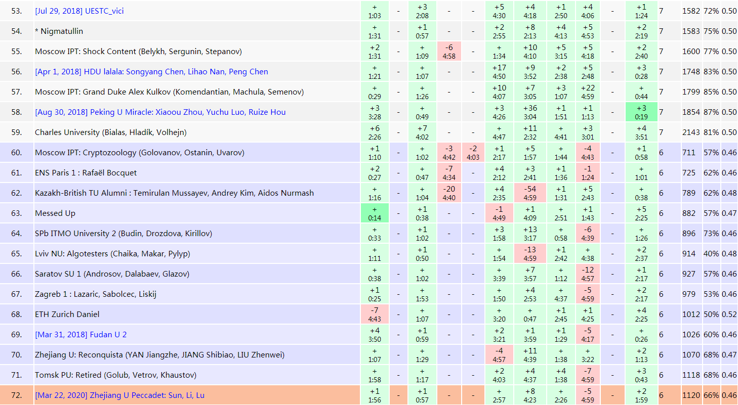最后40分钟三人肝I,yay提出I的一个想法,Oscar觉得不太行,三人想了很久都没有idea,Grammy觉得可以试试yay的想法,交上去wa了。过了一会Grammy又提出一个做法,交上去也wa。最终没有做出I