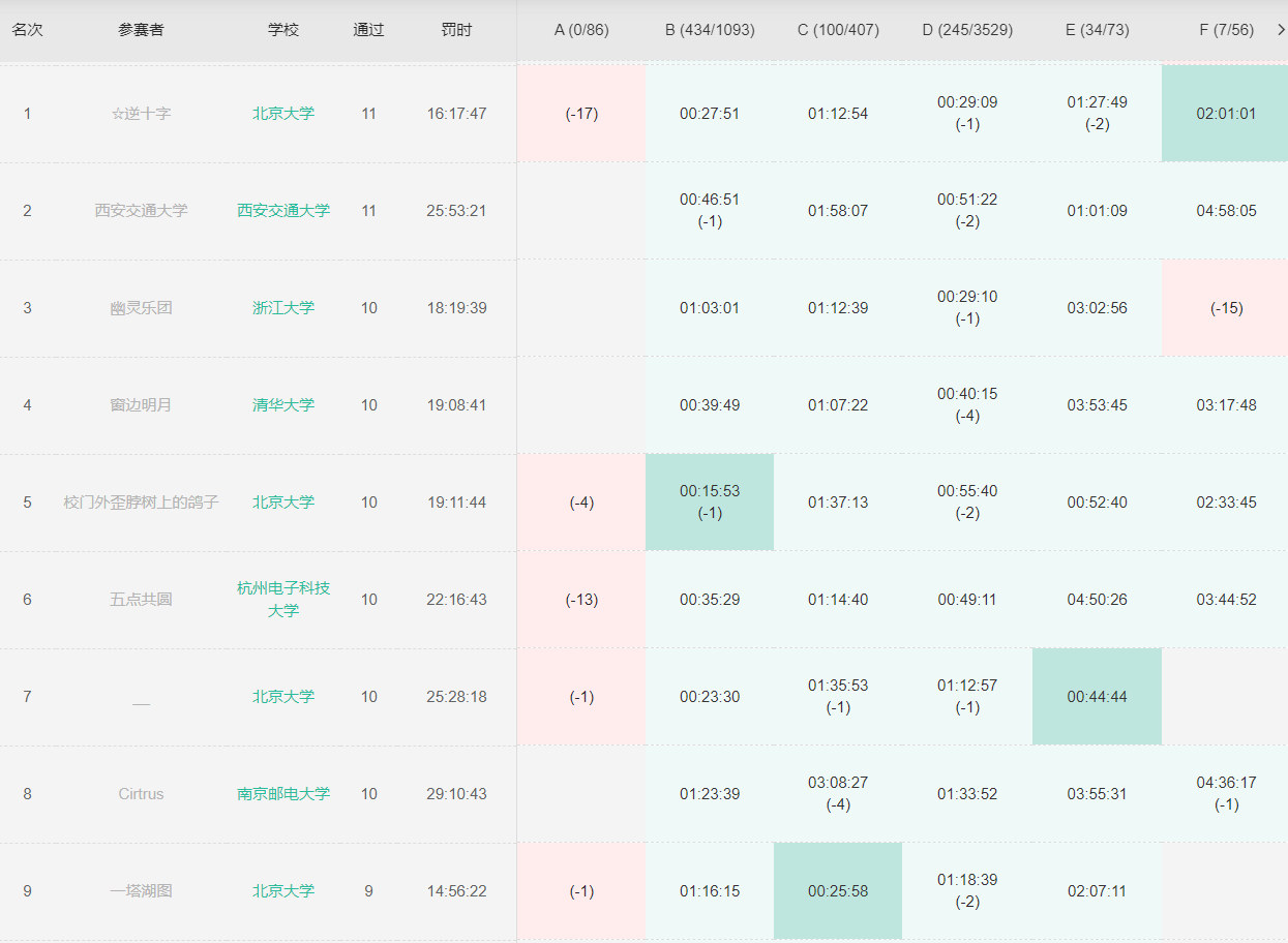 F: 右端点扫过去,对每个左端点存当前选择的最大区间的长度,按照把选的区间个数放到最外面那一维滚动掉(其实甚至可以原地转移)dp,瓶颈上转移的时候状态的翻译常数很大,但这部分事实上可以预处理掉,实现的不够优美,常数萎了就没过
