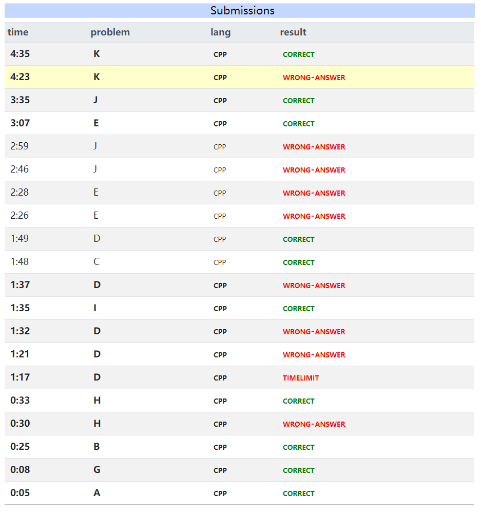 == Ranklist ==