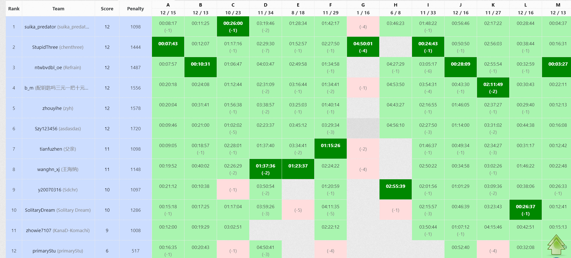 最后pb重构D,'''D4y239''',cxt改掉了卡常数的sort和pow,'''F6Y251'''。yyc开出E后上机,pb发现yyc写错了上去改,最后提交T了(清空的问题),赛后20min内过了E和H。