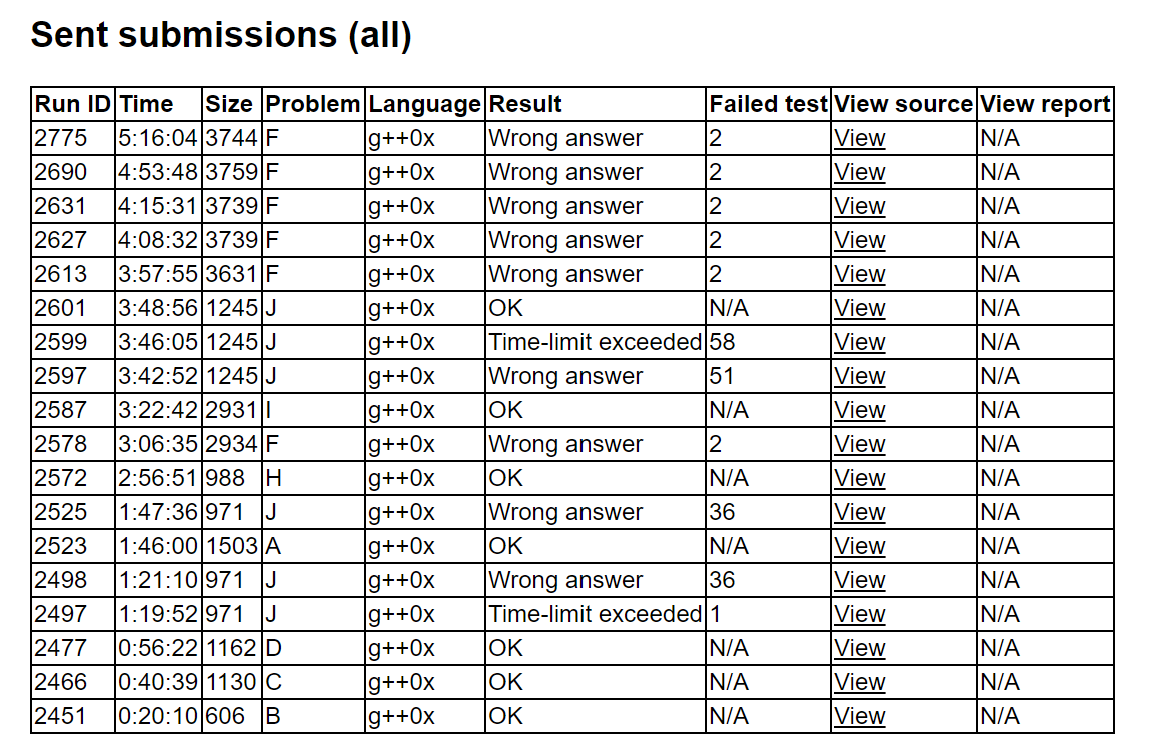 106~150, 大家完成另外四道简单题(F,H,I,J)的算法以及实现,但因为各种各样的问题全部卡手。