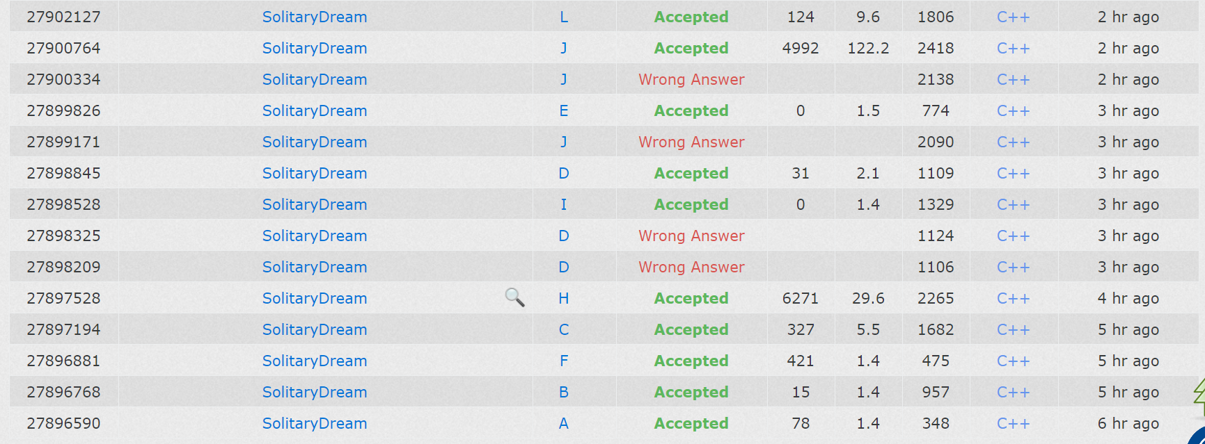 然后发现了可能自己真的不太能写大模拟,还有拿到一道比较棘手的题之后输出就会变得很少,往往会经过写->想->写...这样重复的过程,如果全部想好再上会好很多。