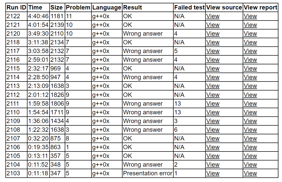 比赛后半段,pb开了一道7,wa了两次以后过了。cxt写了一个10,wa了一次之后过了。yyc推了11的式子,最终在队友帮助下1A了,此时只剩20min。
