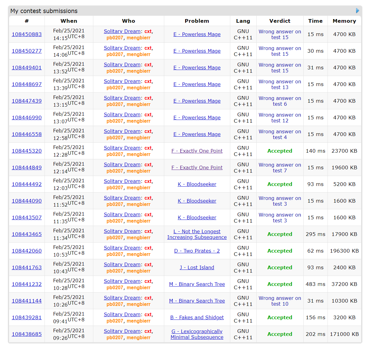 cxt写F,'''F2Y192''', 写完后yyc和cxt写C,pb写E,E由于multiset的erase用错没调出来,C做法出了问题。