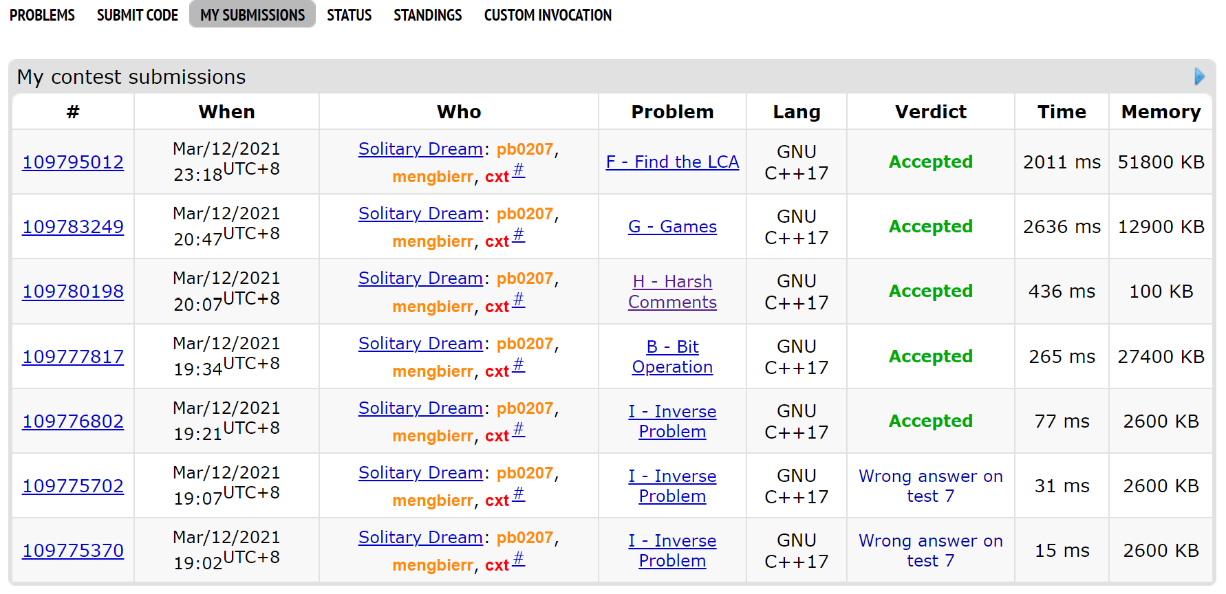 似乎没有太签到的题,cxt先写I,I3Y46,pb和yyc轮流想B,cxt写完不久后yyc写B,B1Y59。