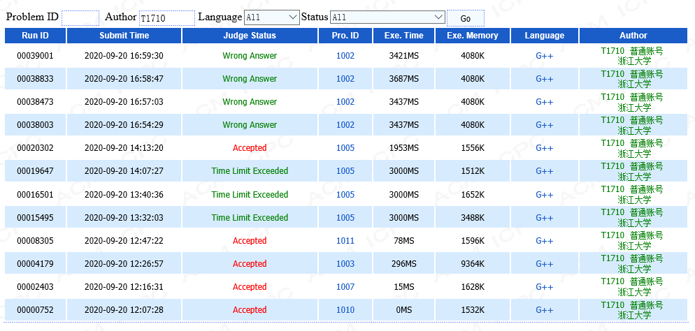 开场我们队队员分别看不同的题,看到一半发现1010题有许多人AC,于是我们一人开始做1010,其他人分别看有少数人AC的1007和1003。很快我们就AC了这三道较简单的题。