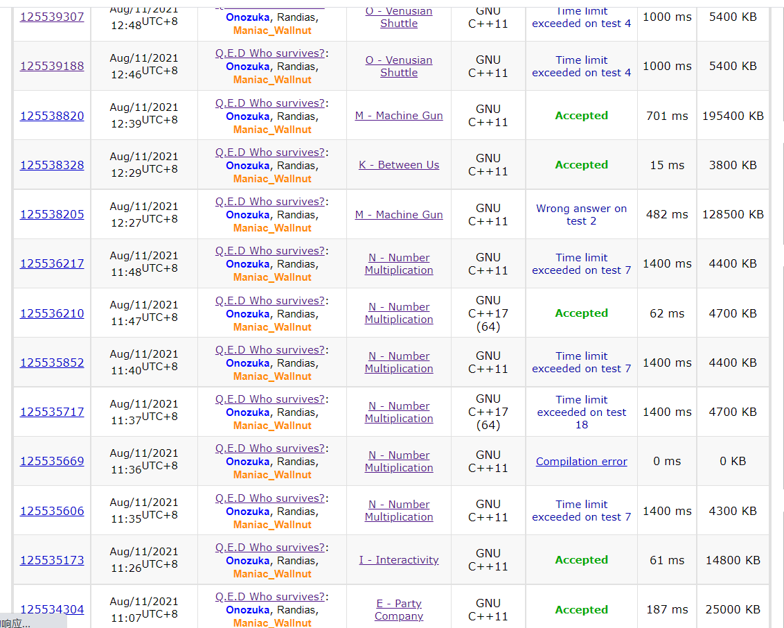 N题因为zju的pollard-rho板子假了导致浪费了很多时间。事实上zju的板子是15年前就没在维护过的了,还是要准备自己的板子。