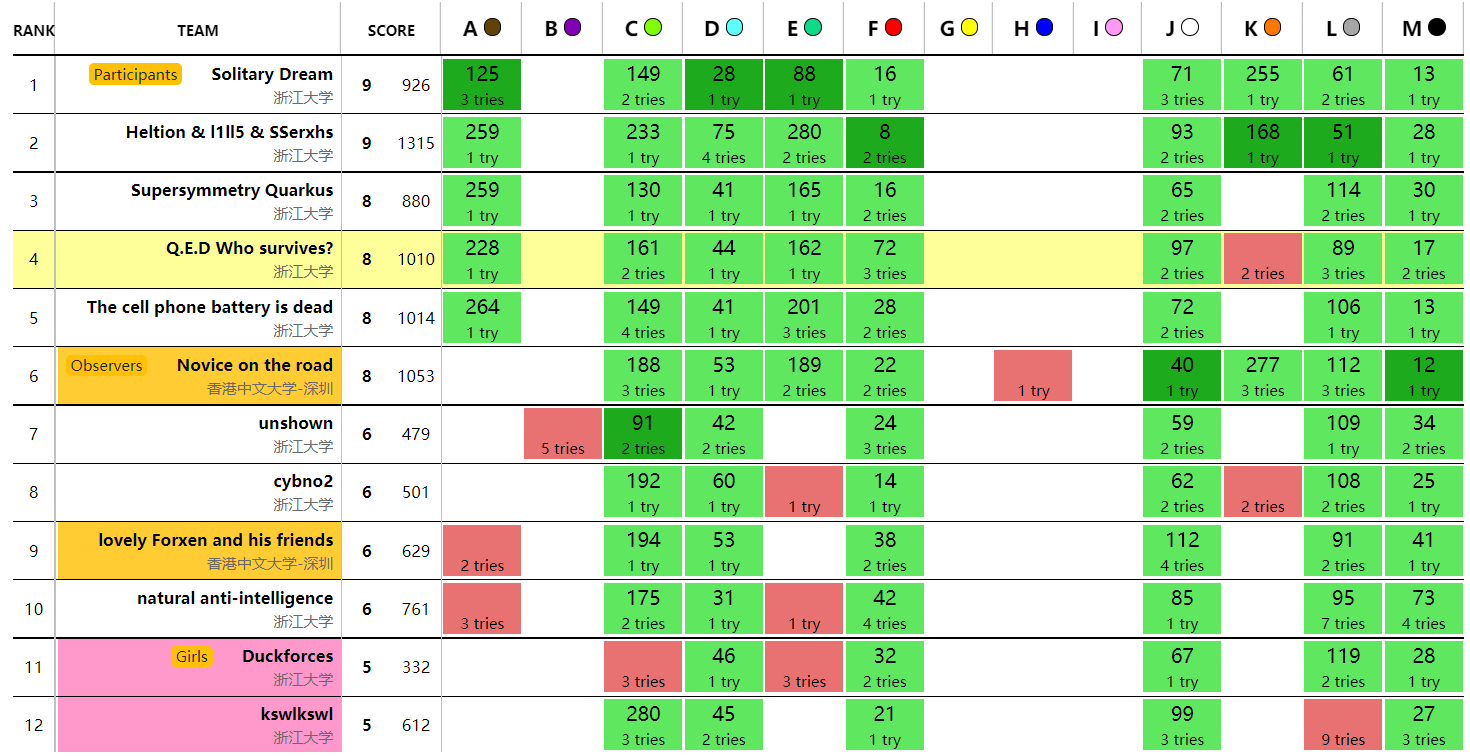 == Ranklist ==
