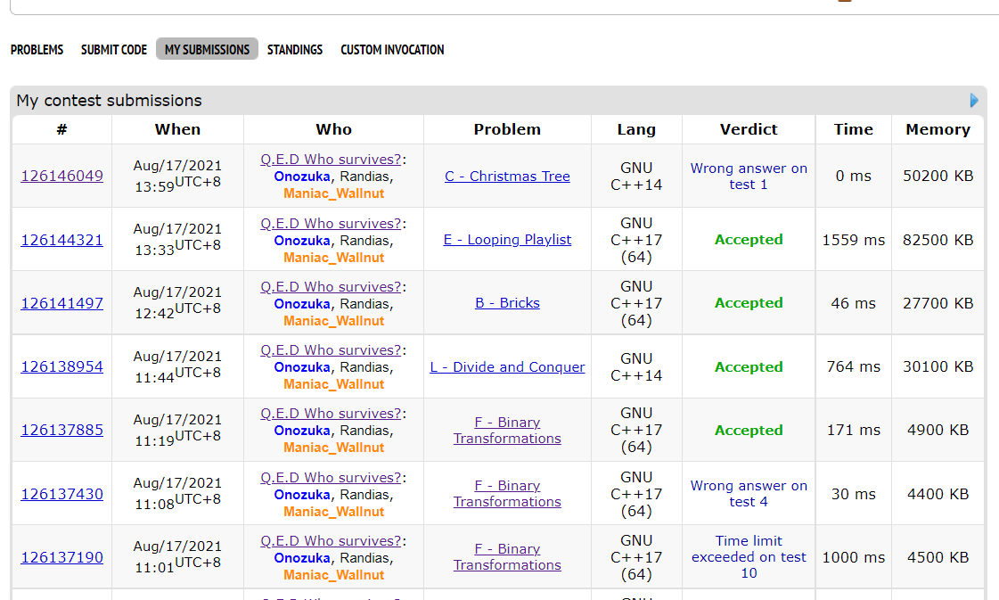 F:签到,0变1和1变0的方案可以贪心,然后枚举那些要使其先变成0再变回1的数的大小上界,用set维护即可。注意要用set比较稳健,排序理论上复杂度相近但是会T。