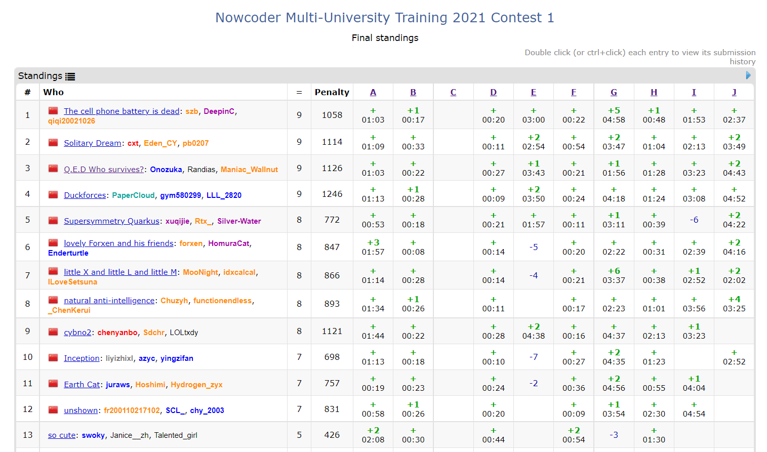 == Ranklist ==