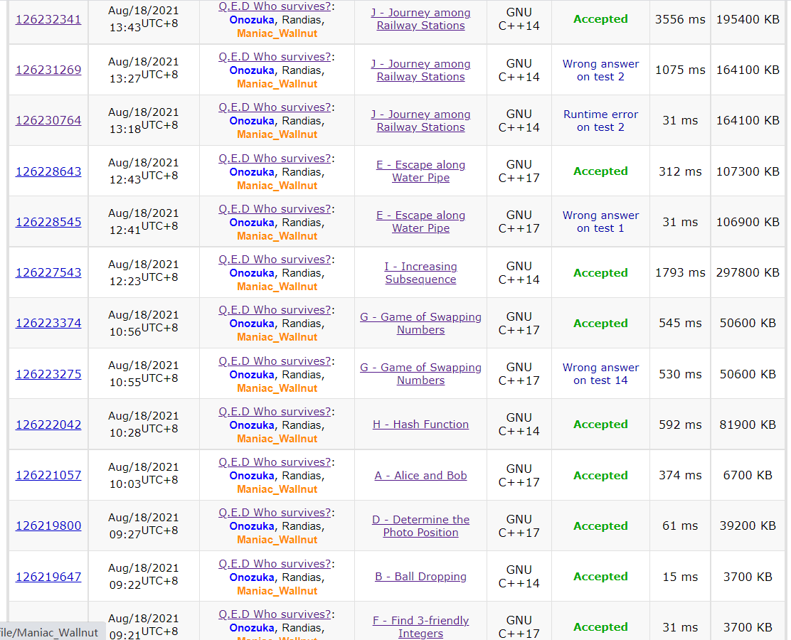 被lxy带了,I和J一个概率期望题一个数据结构题都做的很稳,反而自己出了一些比较低级的错误