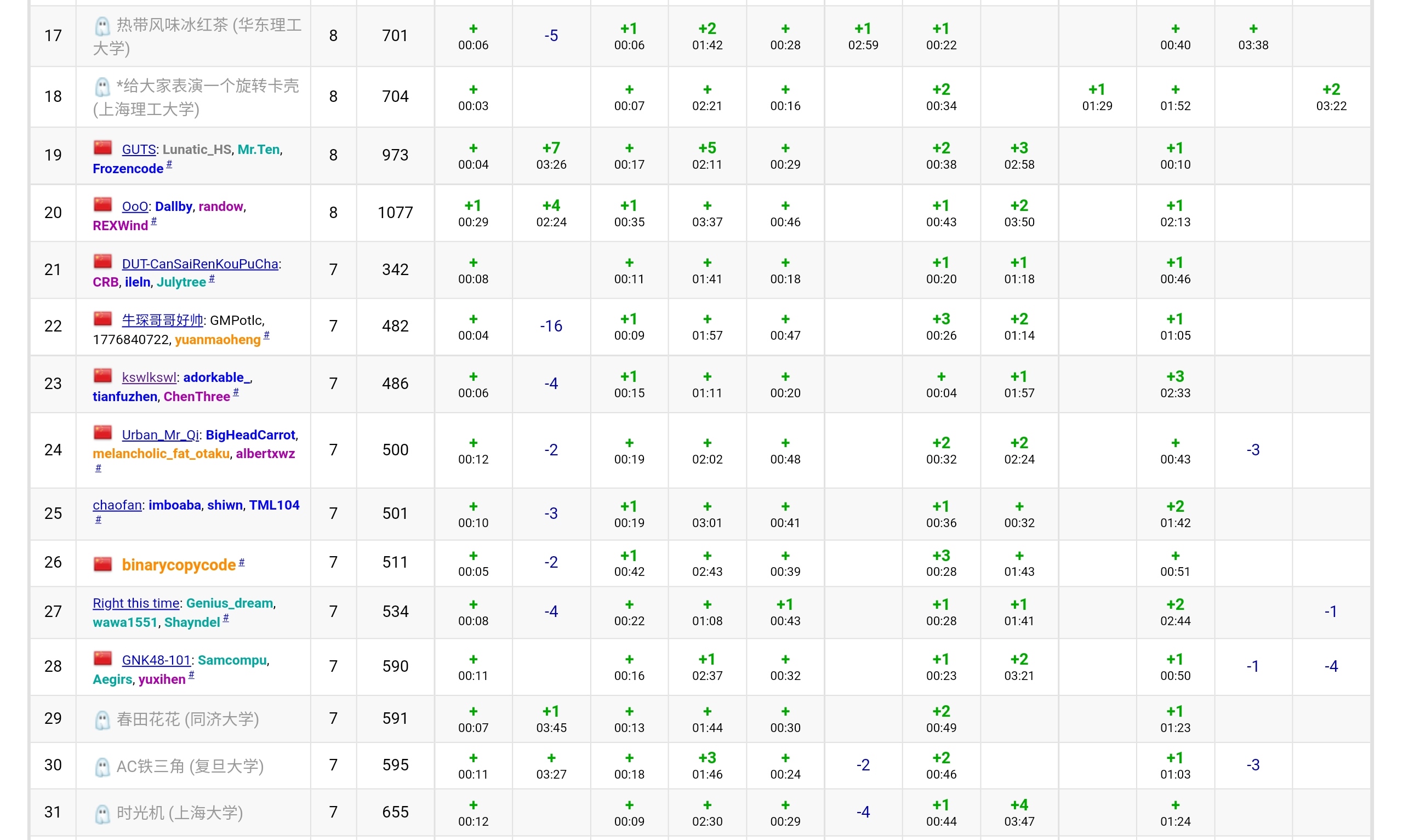反思一下的话,其实最后半个小时也许来得及…至少应该一个人下机去建F费用流的图。另外其实lxy和csr都有直觉B不会是费用流,但是不知道为什么还是上机了(其实这个时候两个人手上都还有可能能出的题,哪怕是让学妹上机抄板子都可能可以多一个题)另外后半场集体挂机出不了题的问题好像还是没有解决🆘(后半场如果放弃所有题把lxy骗上去大模拟看起来好像更稳健…)