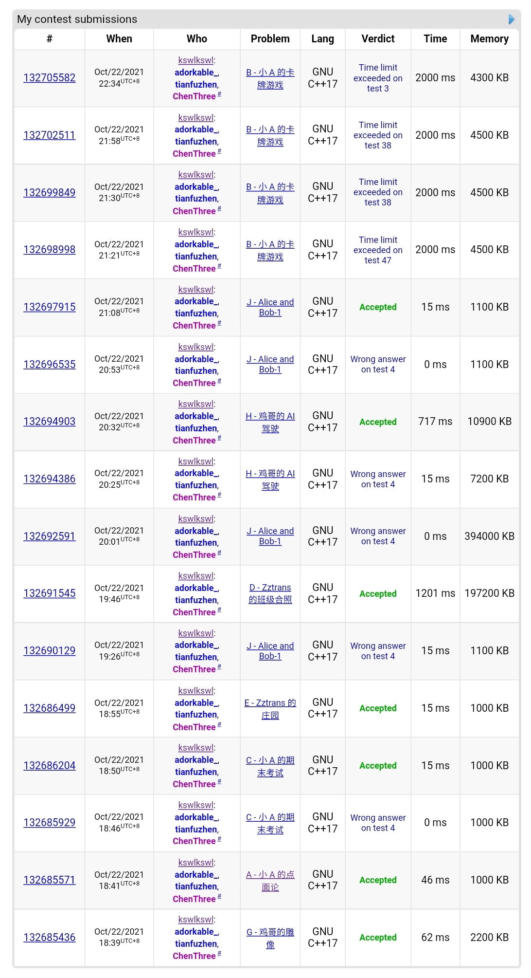 看到是中文题而且有人AK被美美骗到以为是简单题。写下来发现好像也不是很简单。没过的题大部分都有朝着正确的思路迈进但是也就是差一些东西,总之还是水平的问题呜呜呜😥😥😥