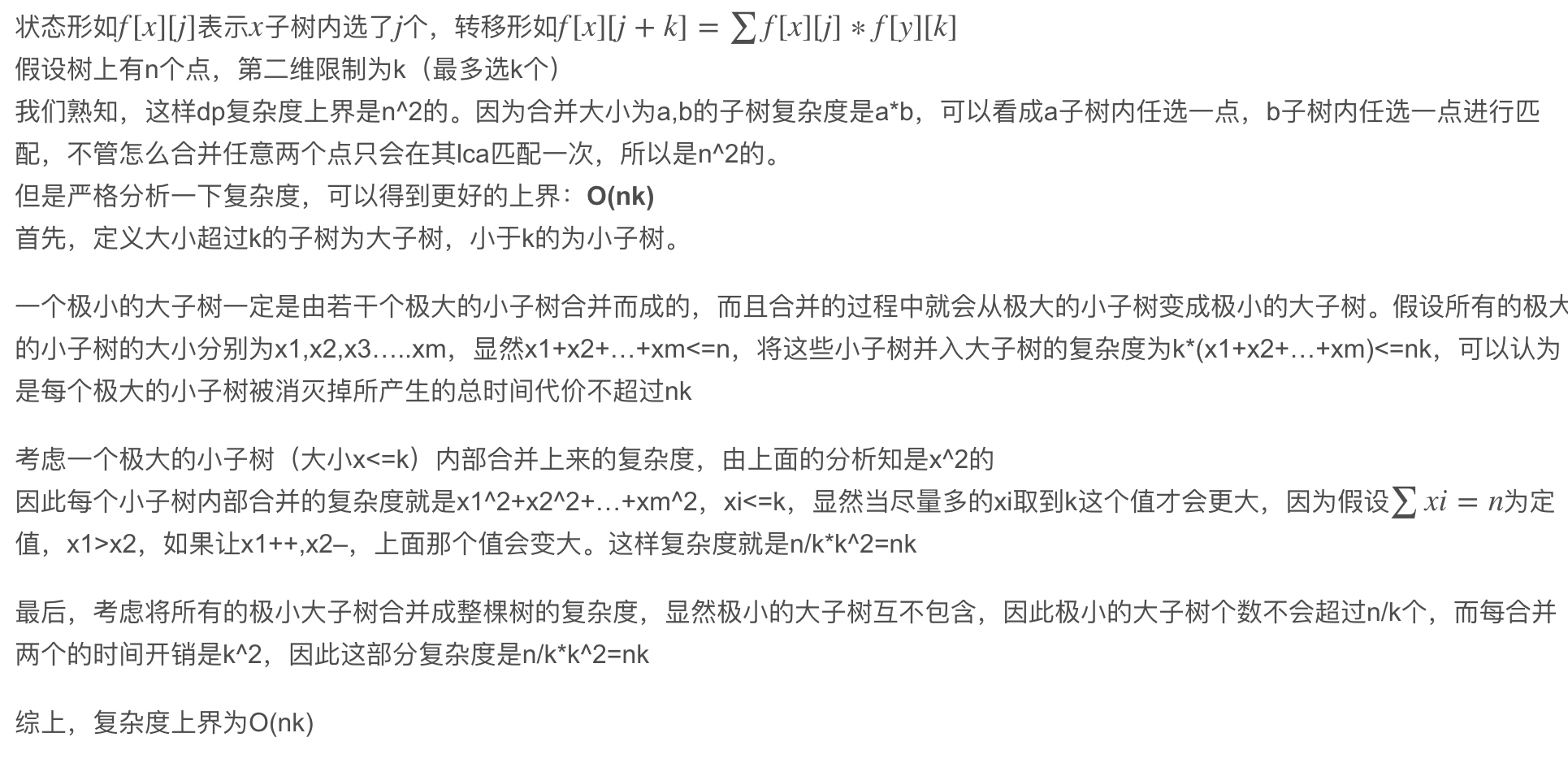 J: 树上dp size优化 [https://blog.csdn.net/lyd_7_29/article/details/79854245 复杂度证明]