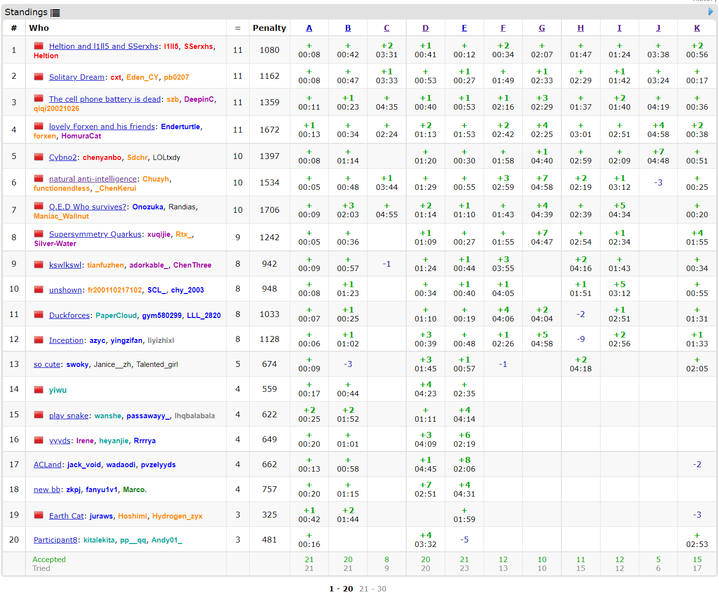 | Nowcoder Multi-University Training 2021 Contest 1 | O | O | . | O | . | O | O | O | O | O | X | X | X | X | X | 38.46 |