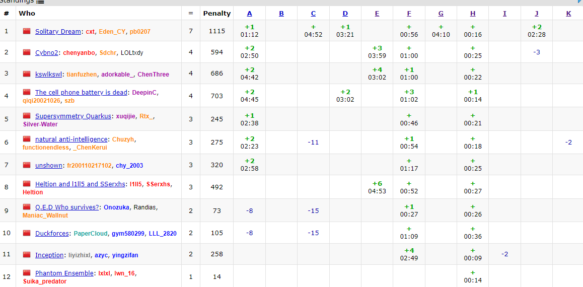 开场我签 H (1,25/1),然后发现榜上没人过题于是判断这场应该是毒瘤场。看 F 有人过于是和 chy 一起看 F 。9:50 chy 想出做法并跟我交流后上去写,过了(2,77/1)。