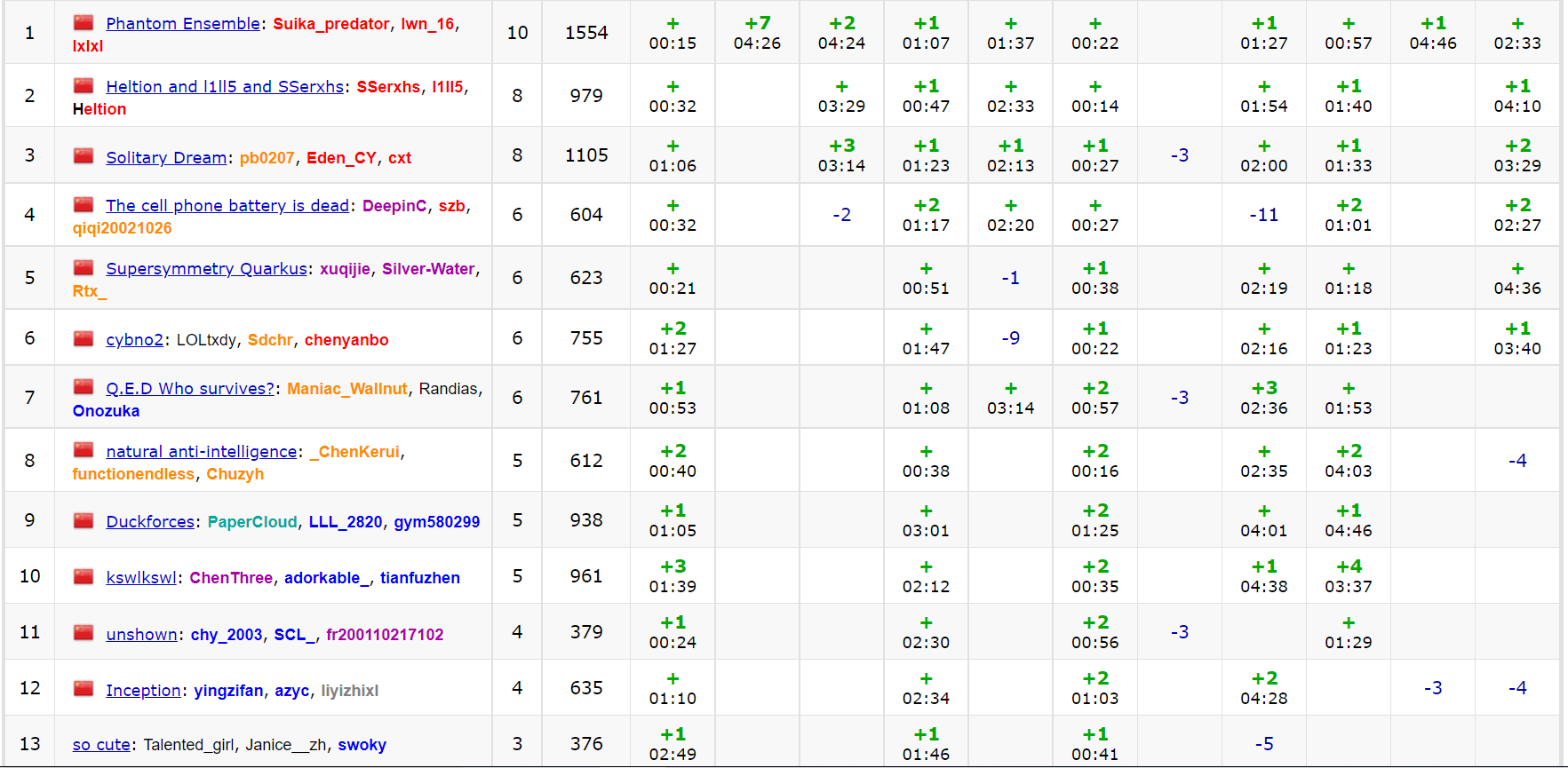 scl:前半期的状态相对前几场来说感觉还是要好一点的,I和J都是一起讨论出来的,终于有了一种1+1+1>3的感觉。后半场的感觉是不太想得动题,容易卡死,并且容易把题目想难。整场比赛下来,不足的一个是知识点还是很薄弱,还有后期脑袋转不过来;有进步的一个是交流相对之前多了,还有造小数据成功减少了罚时。这周补一下图论芝士。