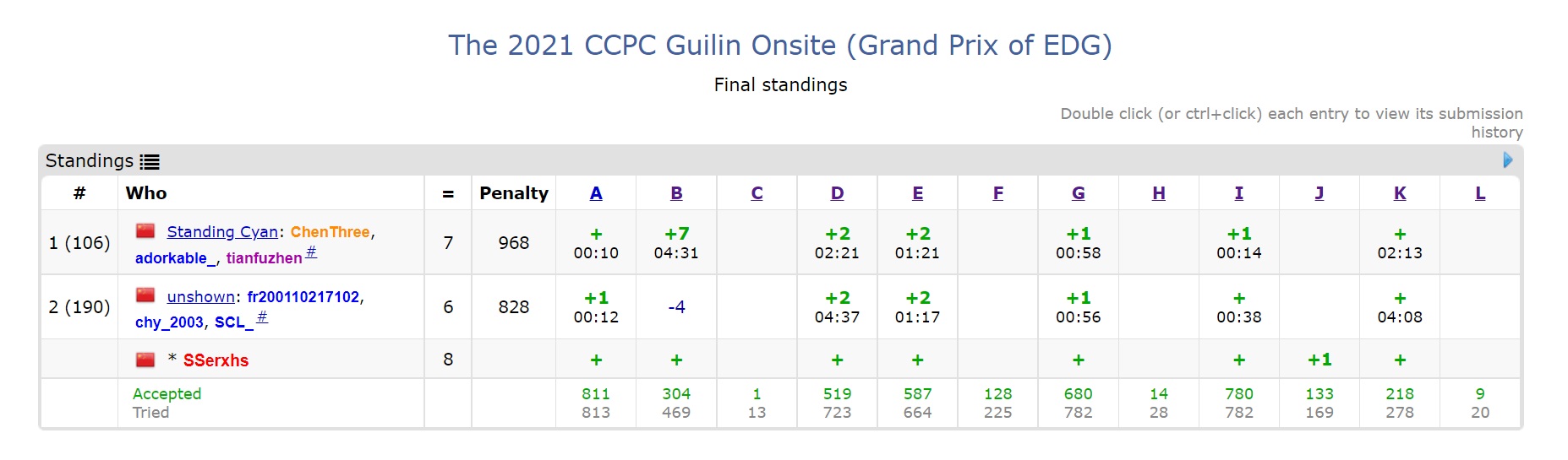 这场看排名应该是银尾。B 过了就是银首(罚时太多了,5 题往后都是封榜后过的。。)