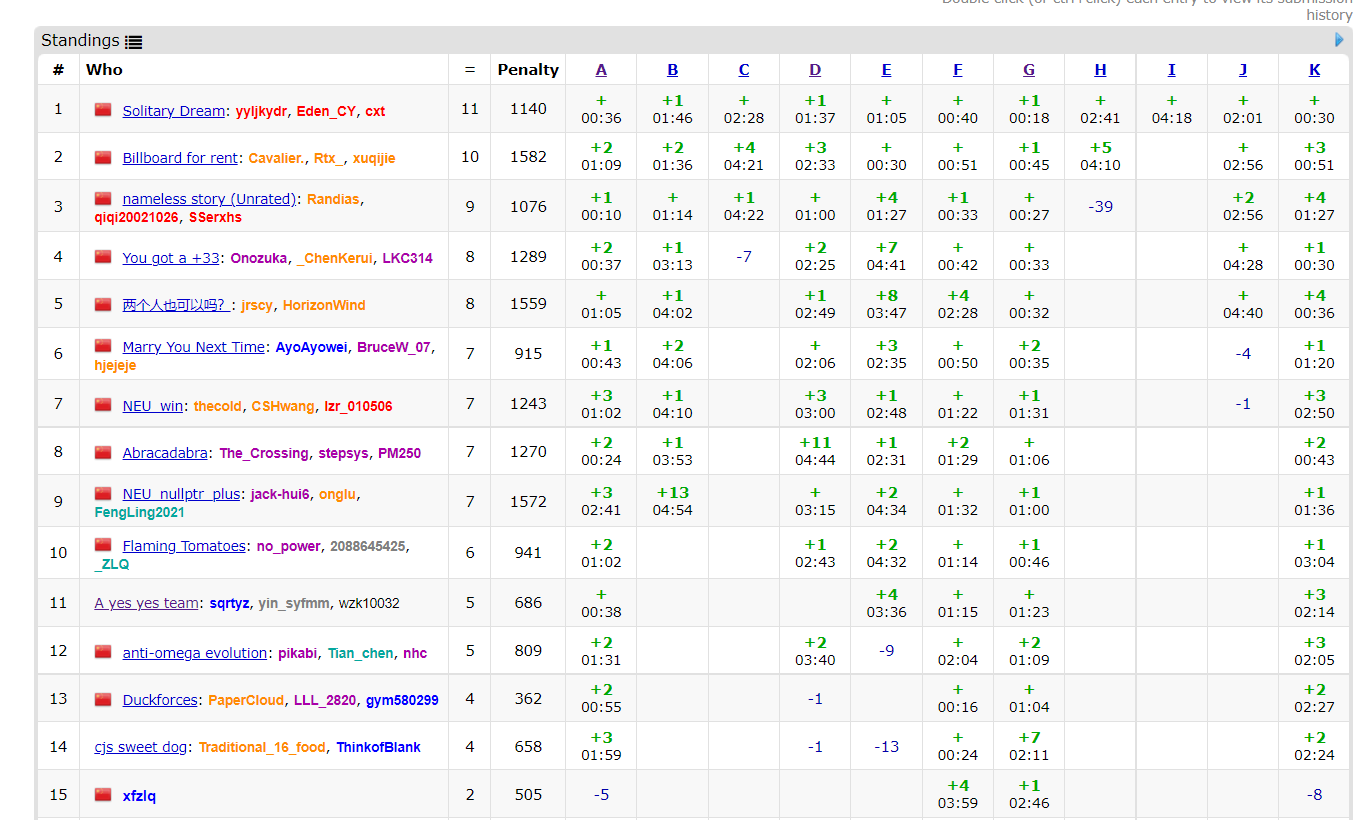 ysy:A题签到犹犹豫豫,看到output里有NO的情况就不自信了,2号签到F题写掉,然后开K并获得WA*3,乱搞一些补丁A了,E题贡献两发WA队友看不下去给切了,然后看啥啥不会,浑浑噩噩结束了